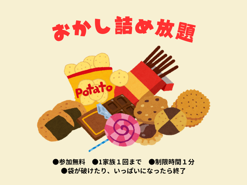 アスカ創建ブースにて、お子さまも大人も楽しめる「おかし詰め放題」を実施します!