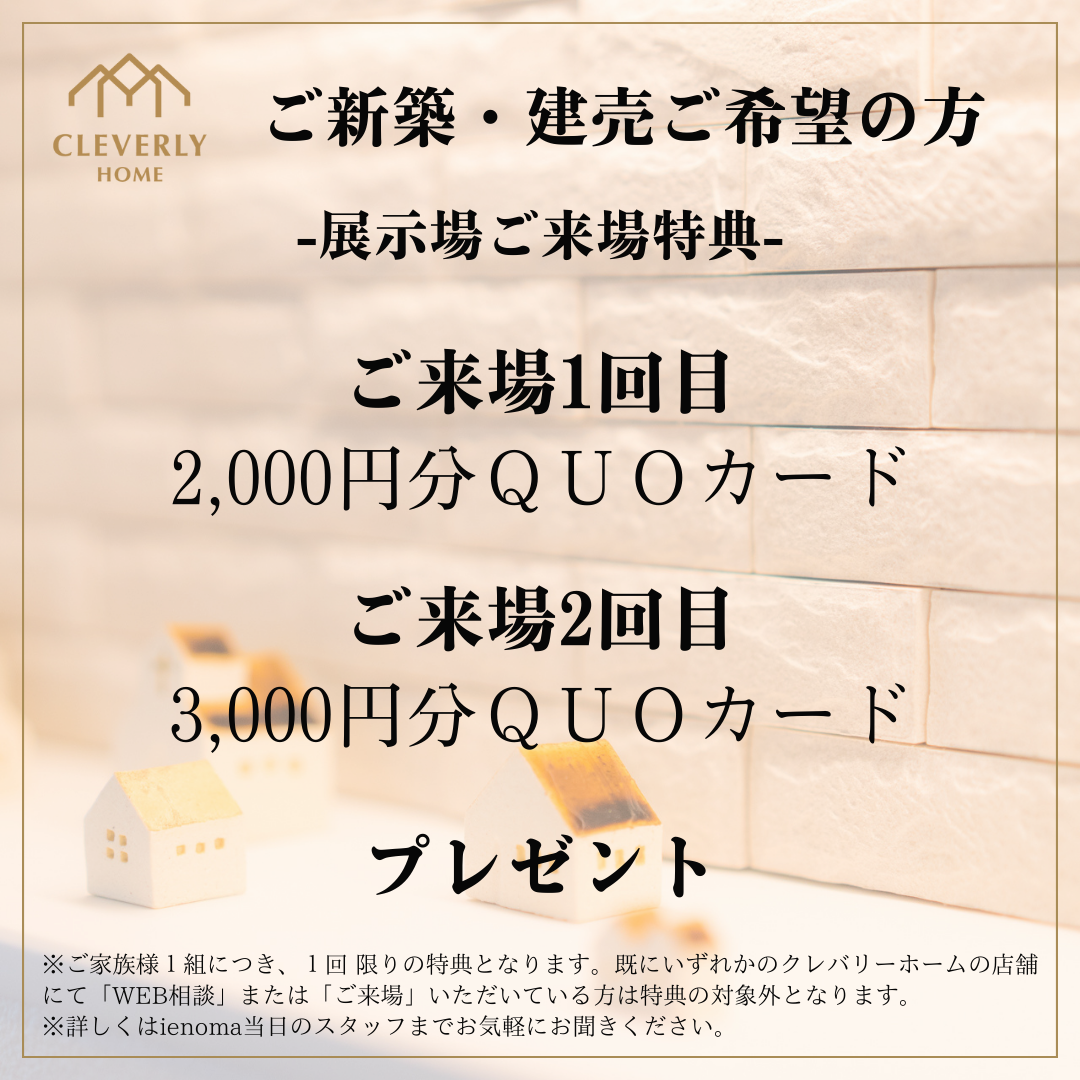 ご来場1回目 2,000円分QUOカード ご来場2回目 3,000円分QUOカード プレゼント…