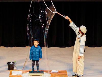 マジックやシャボン玉ショーをはじめ、歌あり、ダンスアリのステージ!