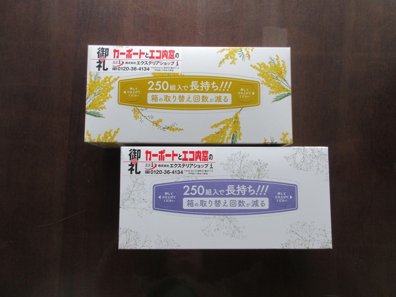 お見積り依頼で、ティッシュBOX(大)2箱プレゼント!