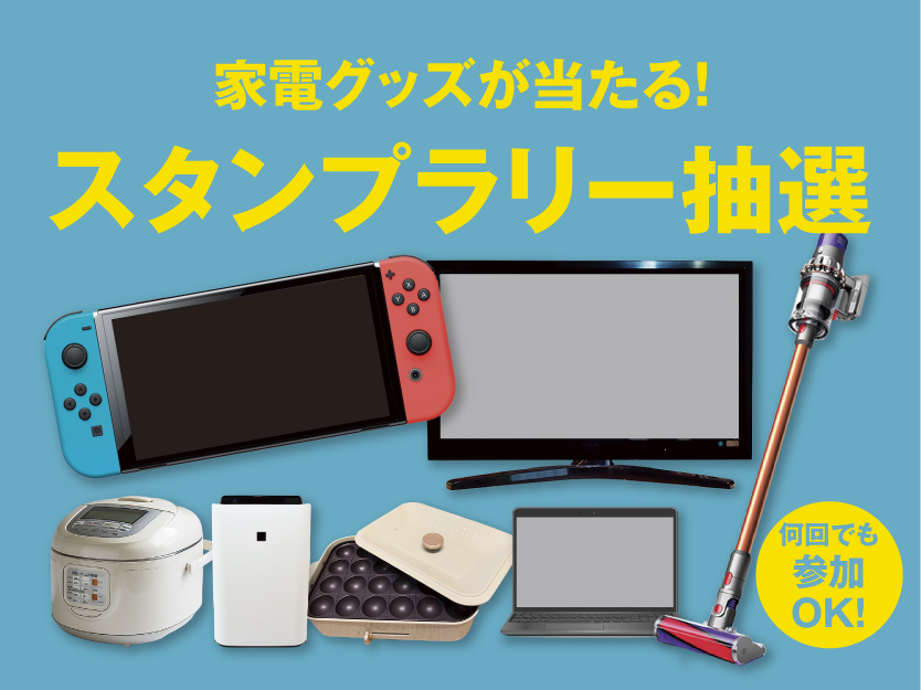 会場内のスタンプを全て集めると、家電グッズが当たる抽選に参加できます。 何回チャレンジしてもOK!