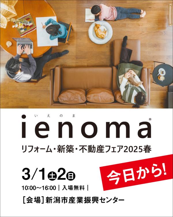 【今日から、新潟開催!】 ienoma(いえのま)リフォーム・新築・不動産フェア2025春 いよいよ今日から、新潟会場で開催! 3月1日(土)・2日(日) 新潟市産業振興センター 家づくりを考える2日間です✨ ▶ リフォームも新築も不動産も!住まいのお悩み、すべて解決! ▶ 最新アイテムが揃ったショールームで実際に体感! ▶ 住宅ローンや相続、税務、保険などの相談もその場でアドバイス! 家族みんなで楽しめるイベントも充実✨