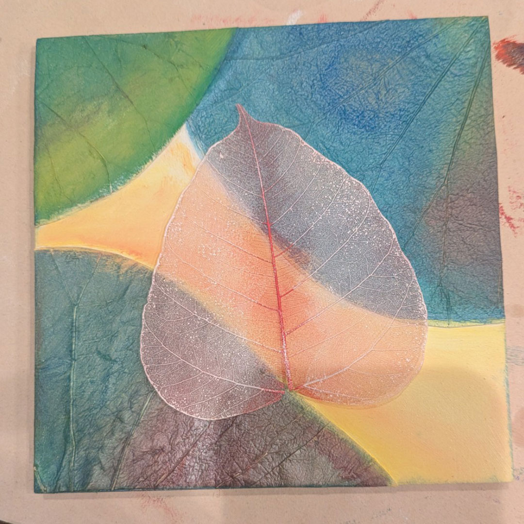 蓮の葉とインド菩提樹の葉脈の美しさと色彩に魅了されてボタニーペインティング作品を作っています。