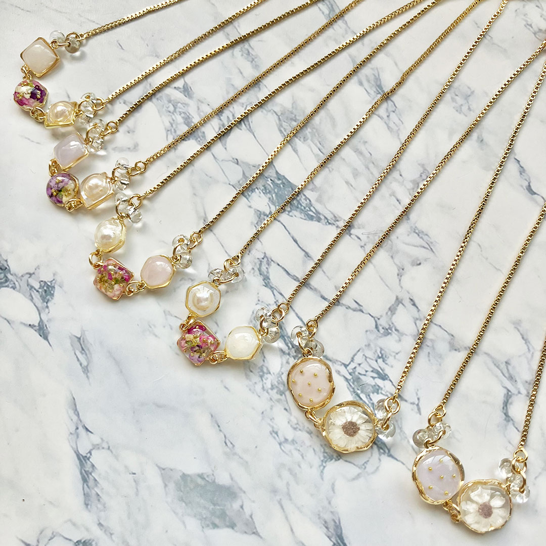 ニュアンスカラーが魅力。日常に彩りを添えるレジン&ビーズのアクセサリー。